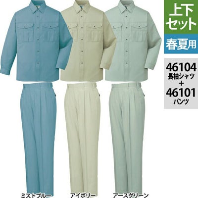 自重堂 作業服 上下セット 46104 エコ長袖シャツ と 46101 エコツータックパンツ S-LL ズボン 春夏用 かっこいい おしゃれ ズボン 作業着