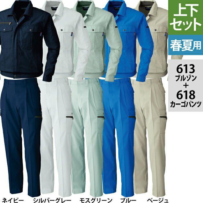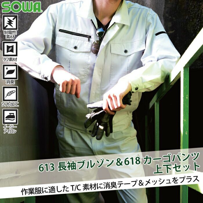 桑和 SOWA 作業服 上下セット 613 長袖ブルゾンM-3L と 618 カーゴパンツ 70-100 春夏用 かっこいい おしゃれ 作業着 ズボン