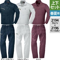 ジーベック XEBEC 作業服 上下セット 2194 長袖ブルゾン と 2196 ノータックラットズボン M-LL カーゴパンツ 春夏用 作業着 ズボン