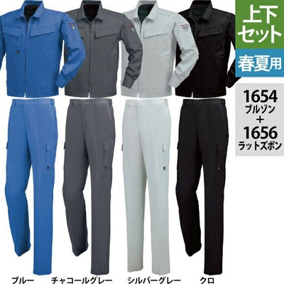 ジーベック XEBEC 作業服 上下セット 1654 長袖ブルゾン と 1656 ノータックピタリティラットズボン S-LL カーゴパンツ 春夏用 作業着