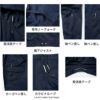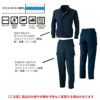 ●秋冬用●素材:ポリエステル100%、フロントファスナー/樹脂、釦/金属(ドット釦)●制電性素材、ストレッチ、消臭、イージーアイロン、隠しマジックテープ、胸ペン差し、袖ペン差し、デオドラントテープ、背中ノーフォークメッシュ、裾アジャスト釦●サイズ:M(胸囲/114、肩巾/48、着丈/63、袖丈/56)、L(胸囲/118、肩巾/50、着丈/65、袖丈/58)、LL(胸囲/122、肩巾/52、着丈/67、袖丈/60)、3L(胸囲/126、肩巾/54、着丈/69、袖丈/62)、4L(胸囲/132、肩巾/56、着丈/69、袖丈/62)、6L(胸囲/144、肩巾/58、着丈/69、袖丈/62)●カラー:ネイビー、チャコールグレー、シルバーグレー、モスグリーン