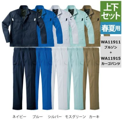 作業服 春夏用 サンエス 上下セット WA11911 長袖ブルゾン と WA11915 ワンタックカーゴパンツ S-LL 作業着 作業ズボン
