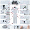 ●秋冬用●素材:ストレッチツイル ポリエステル65%・綿35%、ボタン/プラスチック●帯電防止素材、ストレッチ、反射パイピング、実用新案登録済 懐ポケット(静電テープ引手付き)、カラー配色、カラーカン止め、背裏メッシュ、肩ダーツ、脇消臭テープ(デオグラフト)、袖口調節釦、裾調調節釦、左袖二重ペン差し、左胸二重ペン差し、左胸ポケットネームループ●サイズ:S(着丈/61、肩巾/44、袖丈/54、胸囲/108)、M(着丈/63、肩巾/46、袖丈/56、胸囲/112)、L(着丈/65、肩巾/48、袖丈/58、胸囲/116)、LL(着丈/67、肩巾/50、袖丈/60、胸囲/120)、XL(着丈/69、肩巾/52、袖丈/60、胸囲/124)、4L(着丈/71、肩巾/54、袖丈/60、胸囲/130)、5L(着丈/71、肩巾/56、袖丈/60、胸囲/136)●カラー:ネイビー、ブルー、シルバー、モスグリーン、キャメル
