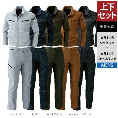 藤和 TSDESIGN 作業服 上下セット 5116 ジャケット と 5114 メンズカーゴパンツ S-LL オールシーズン かっこいい おしゃれ 作業着 ズボン
