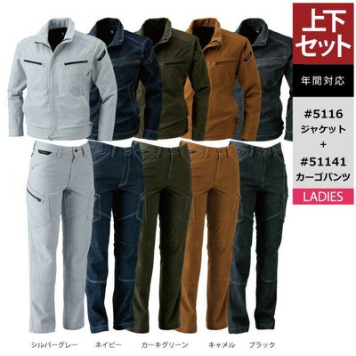 藤和 TSDESIGN 作業服 上下セット 5116 ジャケット と 51141 レディースカーゴパンツ S-LL オールシーズン かっこいい おしゃれ 作業着 ズボン
