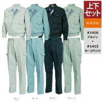 作業服 秋冬用 藤和 上下セット 1416 ブルゾン と 1413 ツータックカーゴパンツ S-LL 作業着 作業ズボン
