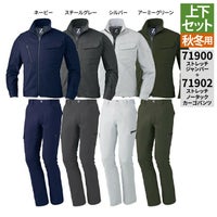 自重堂 作業服 上下セット 71900 ストレッチジャンパー と 71902 ストレッチノータックカーゴパンツ SS-LL 秋冬用 かっこいい おしゃれ 作業着