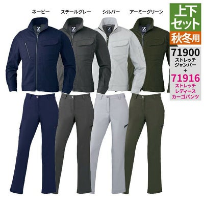 自重堂 作業服 上下セット 71900 ストレッチジャンパー と 71916 ストレッチレディースカーゴパンツ SS-LL 秋冬用 かっこいい おしゃれ 作業着