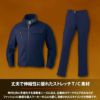 ●秋冬用●素材:バンジーテックツイル●混率:ポリエステル65% 綿35%、フロント/金属ファスナー、ポケット/金属ファスナー、ボタン/金属ボタン●ストレッチ、消臭、抗菌、野帳対応、帯電防止素材使用、ペアコーディネート、背ネーム、内ポケット、消臭&抗菌テープ(両脇・両肩)、左胸二重ポケット、左袖ペン差し、ワンポイント(左袖)●サイズ:SS(胸囲/98、肩幅/39、袖丈/50、着丈/60)、S(胸囲/104、肩幅/41、袖丈/52、着丈/62)、M(胸囲/110、肩幅/45、袖丈/58、着丈/63)、L(胸囲/114、肩幅/47、袖丈/60、着丈/65)、LL(胸囲/118、肩幅/49、袖丈/62、着丈/67)、EL(胸囲/122、肩幅/51、袖丈/62、着丈/69)、4L(胸囲/126、肩幅/53、袖丈/63、着丈/71)、5L(胸囲/130、肩幅/55、袖丈/63、着丈/71)●カラー:ネービー、シルバー、アーミーグリーン、スチールグレー