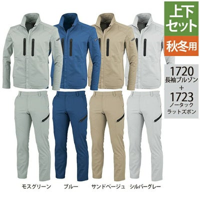 ジーベック XEBEC 作業服 上下セット 1720 長袖ブルゾン と 1723 ノータックラットズボン S-LL カーゴパンツ オールシーズン 作業着
