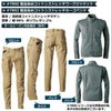 ●オールシーズン用●素材:高密度コットンストレッチサテン●混率:綿98% ポリウレタン2%●オールシーズン対応素材(厚手)、3Dカッティングによる抜群の動きやすさ、スマホが入る右胸の縦ファスナー付きポケット、横から小物が収納できる2重構造の左袖ペンポケット●サイズ:S(胸囲/99、肩幅/42、着丈/60、袖丈/58、裾囲/93)、M(胸囲/104、肩幅/44、着丈/62、袖丈/60、裾囲/97)、L(胸囲/109、肩幅/46、着丈/64、袖丈/61、裾囲/103)、LL(胸囲/115、肩幅/48、着丈/66、袖丈/62、裾囲/109)、3L(胸囲/121、肩幅/50、着丈/67、袖丈/63、裾囲/115)、4L(胸囲/128、肩幅/52、着丈/68、袖丈/64、裾囲/122)●カラー:カーキ、デザートキャメル、アーミーグレー
