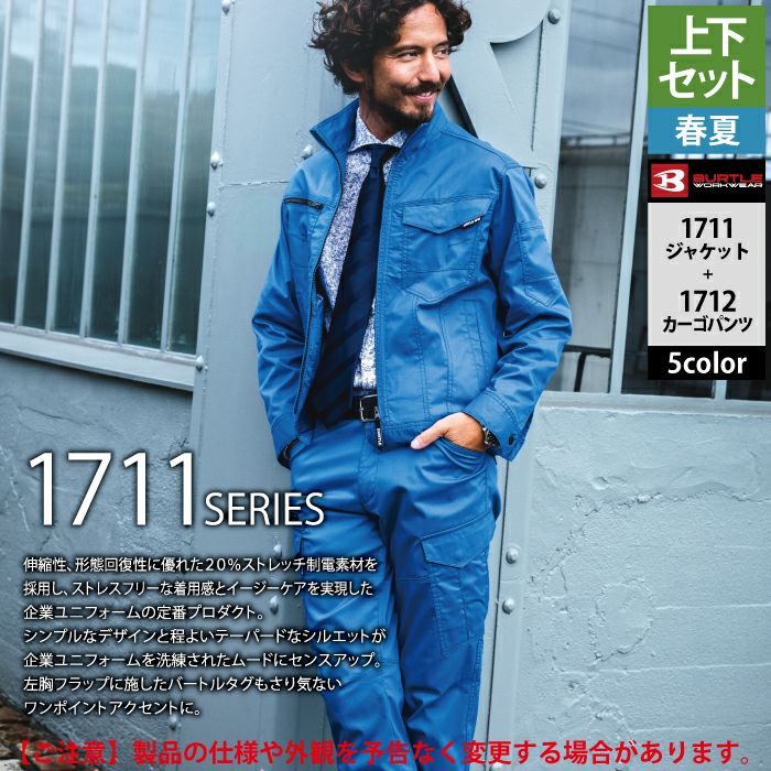 バートル BURTLE 作業着 上下セット 1711 と 1712 ジャケットセットアップ 作業服 おしゃれ 春夏 JIS適合制電 作業ズボン