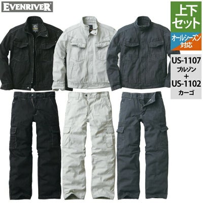 イーブンリバー 作業服 作業着 上下セット イーブンリバー EVENRIVER 作業服 上下セット US-1107 フィッシャーストライプブルゾン と US-1102 フィッシャーストライプカーゴ 秋冬用