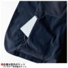 ◇機能:撥水・大型スマホも入る口幅11センチポケット・ファスナー付きでもの落下防止の胸ポケット・脇部分には隠しファスナー付きでモノ落下防止ポケット・袖口はボタンで開閉。手洗い時にも便利。左胸・右胸の両玉内ポケット。右裾ファスナー付き大型ポケット
