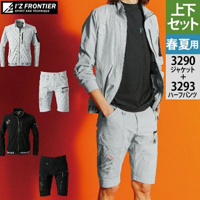 アイズフロンティア 作業服 上下セット 3290 エアーダクトストレッチワークジャケットS-4L と 3293 エアーダクトストレッチハーフパンツ SS-5L