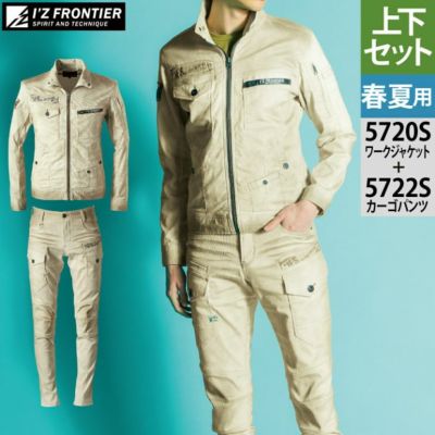 アイズフロンティア 作業服 上下セット 5720S 接触冷感ランダムピケワークジャケットS-6L と 5722S 接触冷感ランダムピケカーゴパンツ 73-120