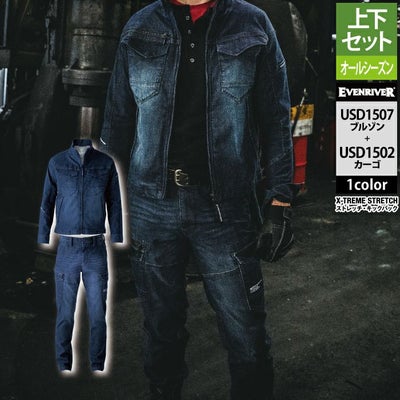 イーブンリバー 作業服 作業着 上下セット イーブンリバー EVENRIVER 作業服 上下セット USD1507 ストレッチマックスデニムブルゾンS-3L と USD1502 ストレッチマックスデニムカーゴ