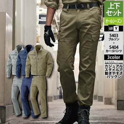 村上被服 HOOH 鳳凰 作業服 上下セット 5403 ブルゾンM-3L と 5404 カーゴパンツ S-3L 作業着 作業ズボン