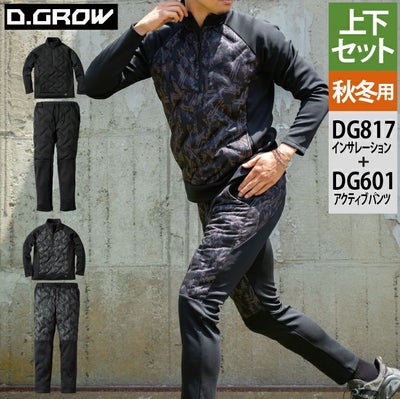 クロダルマ 作業服 上下セット DG817 ハーフジップインサレーション と DG601 中綿入アクティブパンツ 秋冬用 作業着 作業ズボン