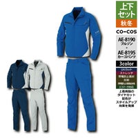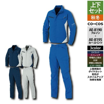 コーコス 作業服 上下セット AE-8190 エコ裏綿ストレッチブルゾンSS-3L と AE-8195 エコ裏綿ストレッチカーゴパンツ SS-3L 作業着 作業ズボン 秋冬用