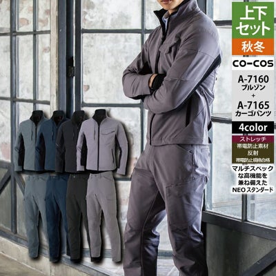 コーコス 作業服 上下セット A-7160 ストレッチブルゾンS-3L と A-7165 ストレッチカーゴパンツ SS-3L 作業着 作業ズボン 秋冬用