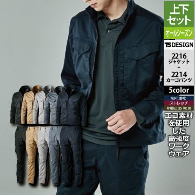 藤和 TSDESIGN 作業服 上下セット 2216 TecRecycジャケットM-3L と 2214 TecRecycカーゴパンツ SS-3L 作業着 作業ズボン