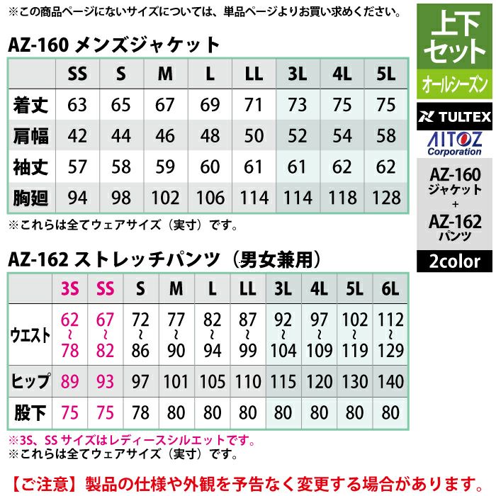 アイトス Aitoz 作業服 作業着 作業ズボン アイトス 作業服 作業着 Aitoz 上下セット AZ-160 メンズジャケットSS-3L と AZ-162 ストレッチパンツ SS-3L 作業着 作業ズボン