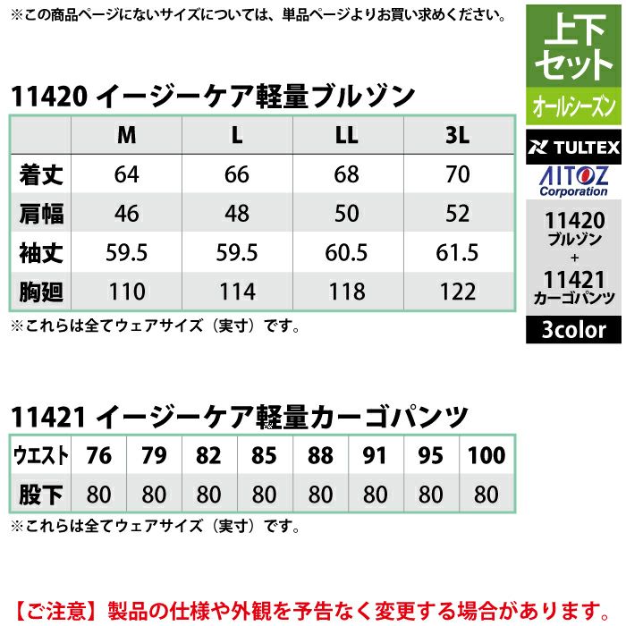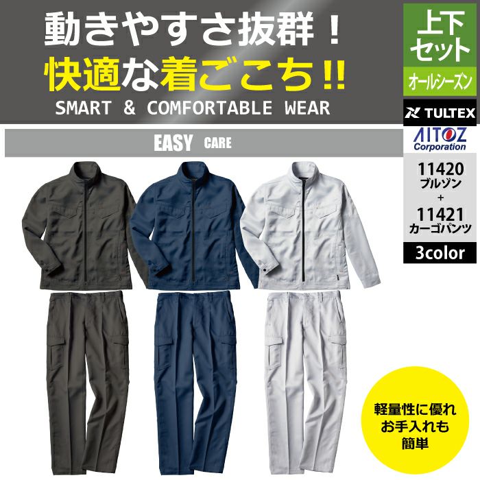 アイトス Aitoz 作業服 作業着 作業ズボン アイトス 作業服 作業着 Aitoz 上下セット 11420 イージーケア軽量ブルゾンM-3L と 11421 イージーケア軽量カーゴパンツ 76-100 作業着
