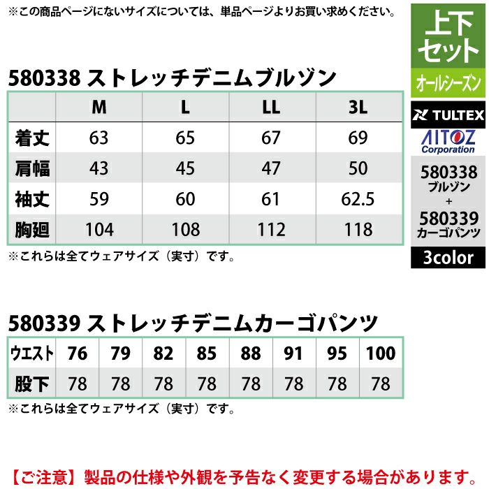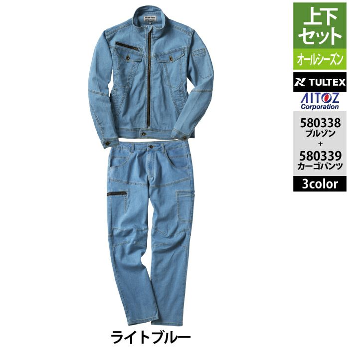 アイトス Aitoz 作業服 作業着 作業ズボン アイトス 作業服 作業着 Aitoz 上下セット 580338 ストレッチデニムブルゾンM-3L と 580339 ストレッチデニムカーゴパンツ 76-100 作業着