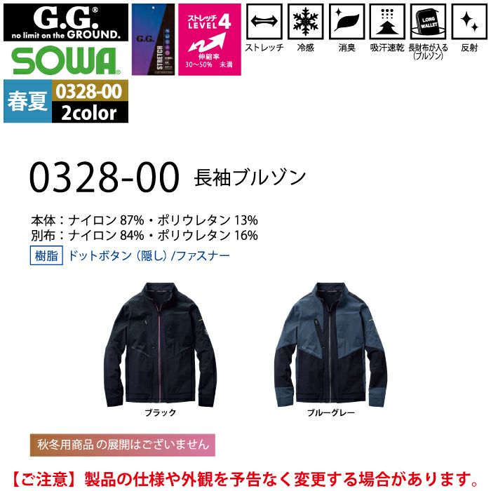 桑和 SOWA 作業服 作業着 作業ズボン 桑和 SOWA 作業服 春夏用 0328-00 長袖ブルゾン S-LL