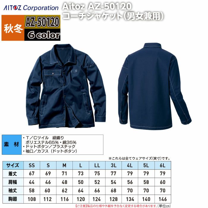 アイトス Aitoz 作業服 作業着 作業ズボン アイトス 作業服 作業着 Aitoz AZ-50120 コーチジャケット(男女兼用) 6L