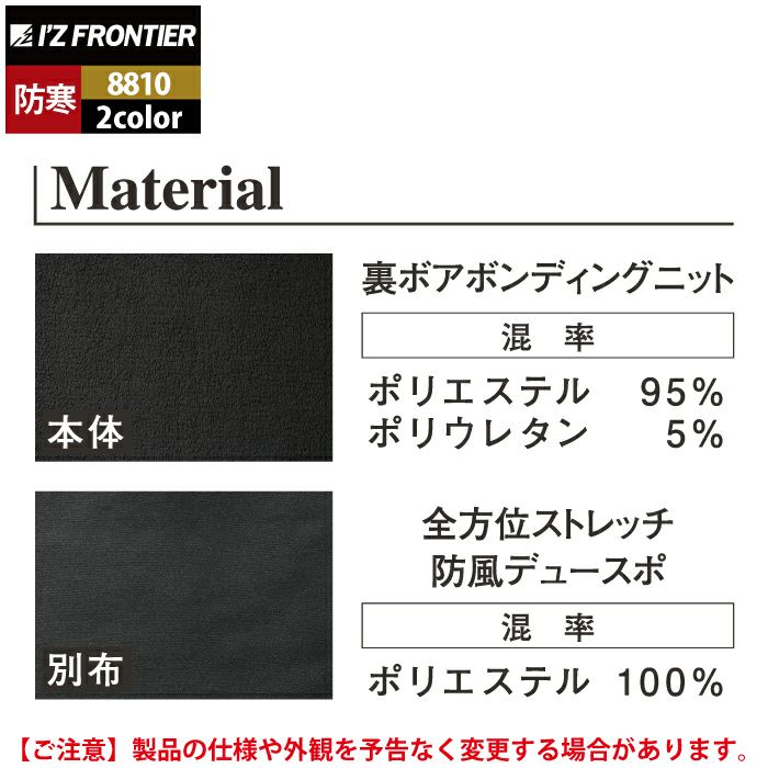 アイズフロンティア 作業服 作業着 作業ズボン アイズフロンティア 作業服 8810 ハイブリットストレッチ裏ボアパーカー S-3L 秋冬用