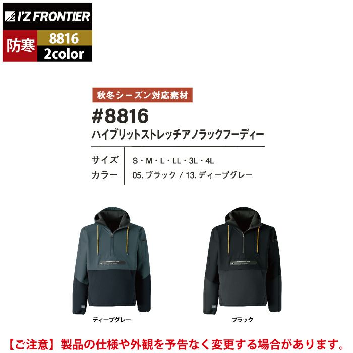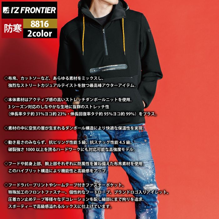 アイズフロンティア 作業服 作業着 作業ズボン アイズフロンティア 作業服 8816 ハイブリットストレッチアノラックフーディー S-4L 秋冬用