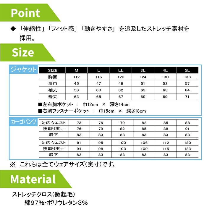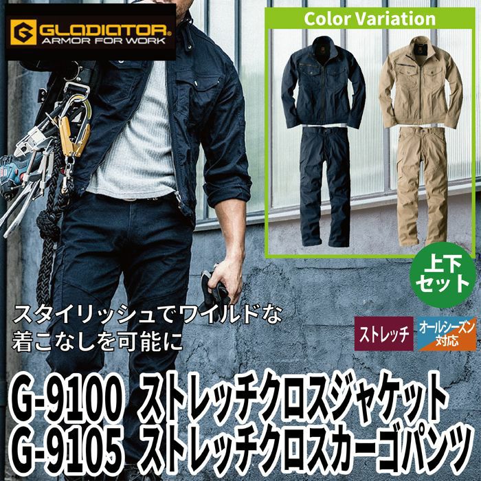 コーコス 作業服 作業着 作業ズボン コーコス 作業服 オールシーズン 上下セット G-9100 ストレッチクロスジャケットM-5L と G-9105 ストレッチクロスカーゴパンツ 73-120 作業着 作業ズボン