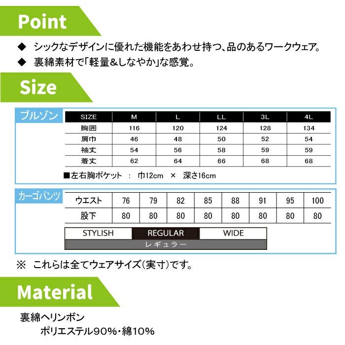 桑和 SOWA 作業服 作業着 作業ズボン 桑和 SOWA 作業服 上下セット 秋冬用 9664 長袖ブルゾン(反射材付き)SS-3L と 9666 カーゴパンツ(反射材付き) GS-100 作業着 作業ズボン