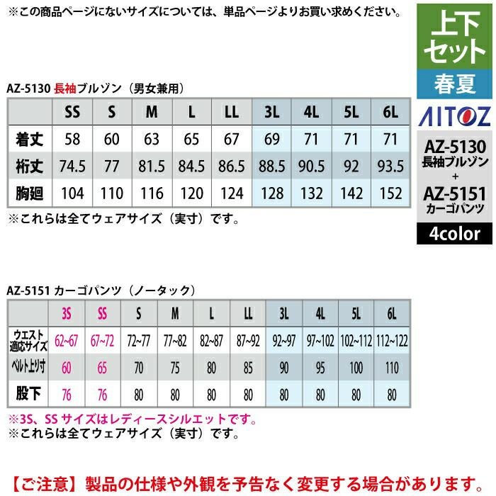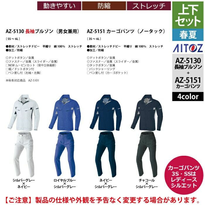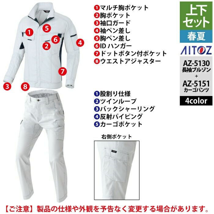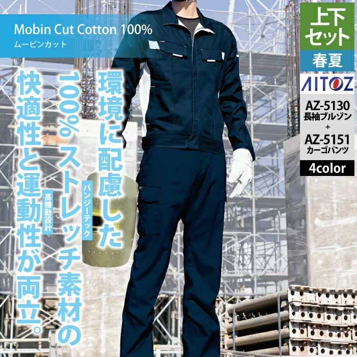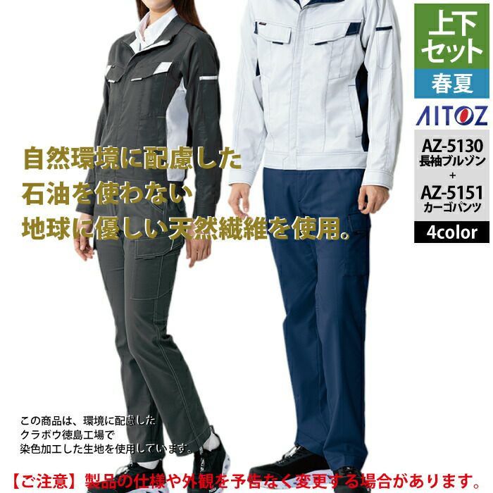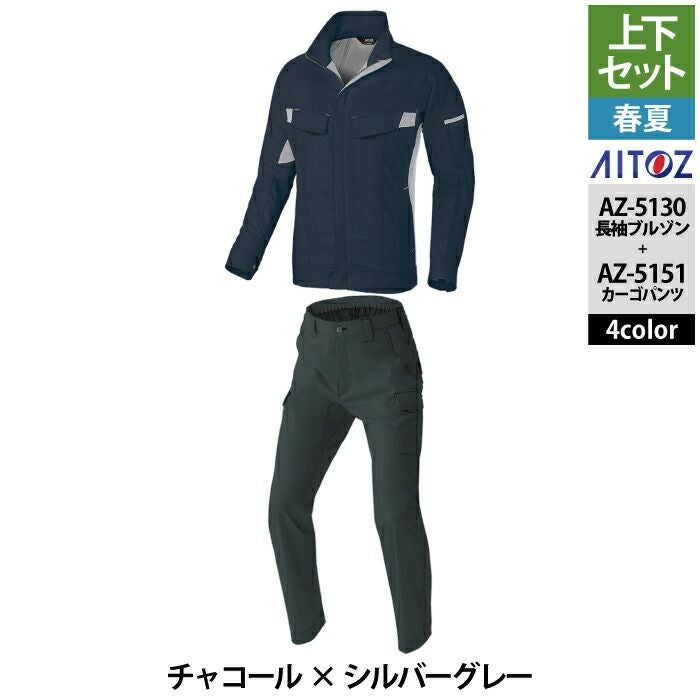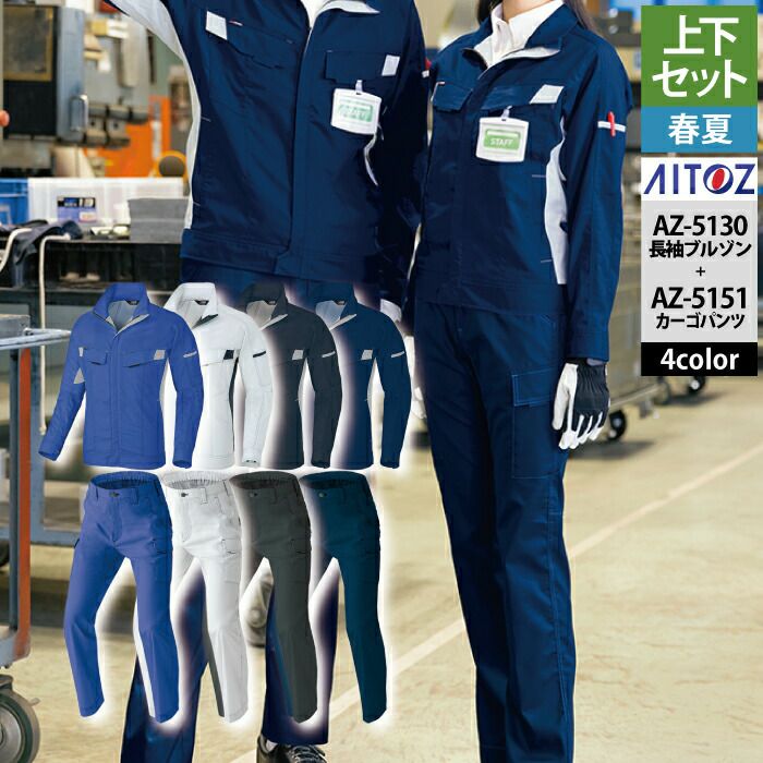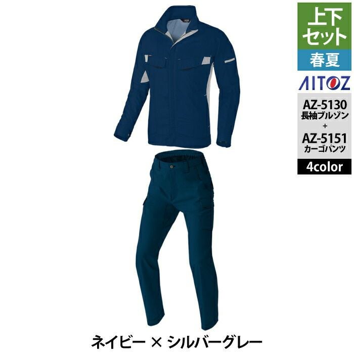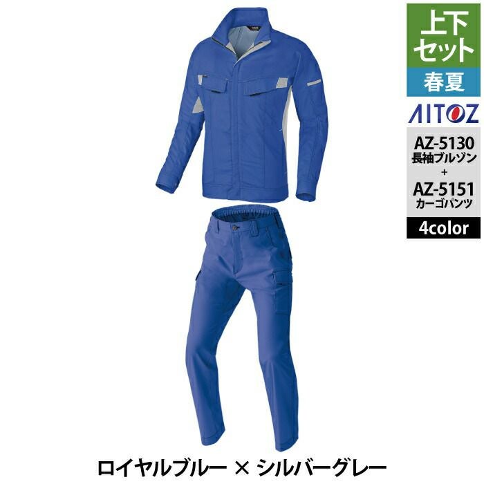 アイトス Aitoz 作業服 作業着 作業ズボン アイトス 作業服 作業着 Aitoz 春夏用 上下セット AZ-5130 長袖ブルゾン(男女兼用)M-3L と AZ-5151 カーゴパンツ(ノータック) 3S-LL 作業着 作業ズボン