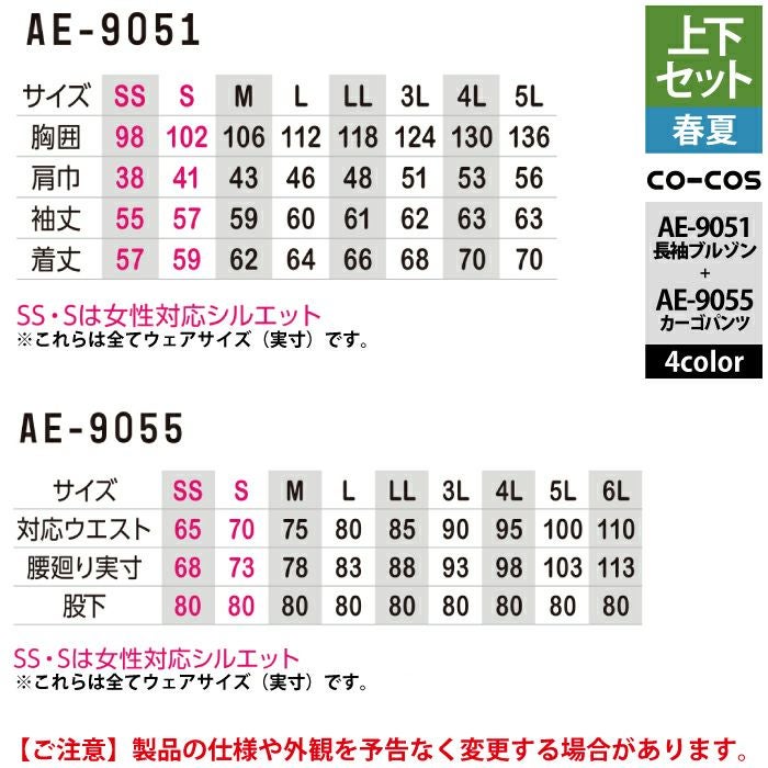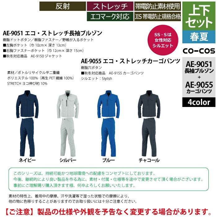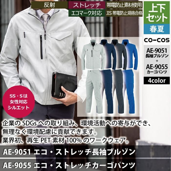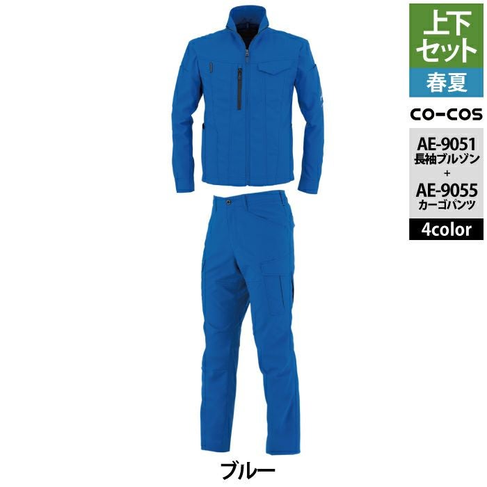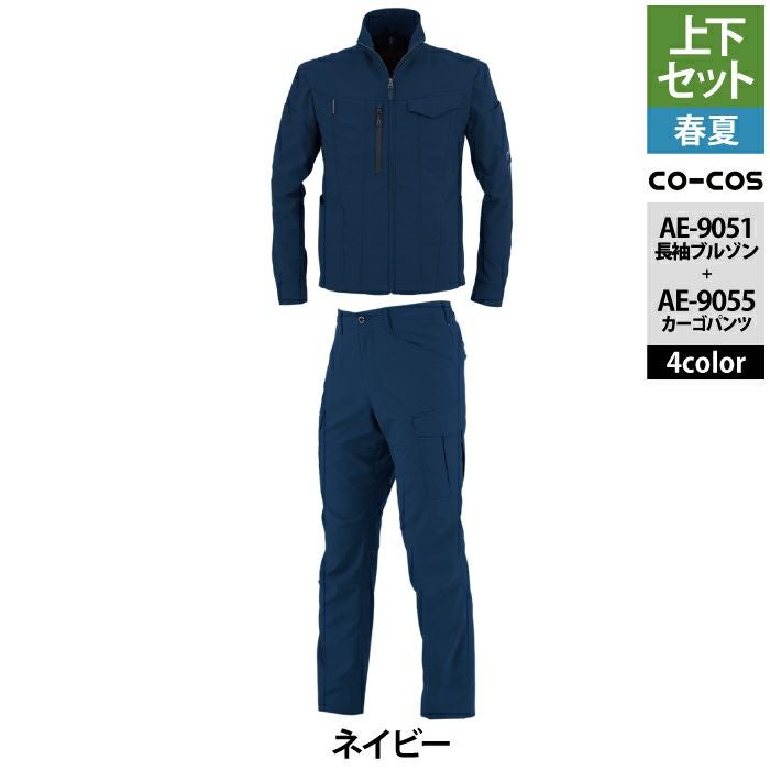 コーコス 作業服 作業着 作業ズボン コーコス 作業服 春夏用 上下セット AE-9051 エコ・ストレッチ長袖ブルゾンS-3L と AE-9055 エコ・ストレッチカーゴパンツ SS-3L 作業着 作業ズボン