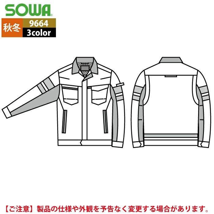 桑和 SOWA 作業服 作業着 作業ズボン 桑和 SOWA 作業服 秋冬用 9664 長袖ブルゾン(反射材付き) 8L