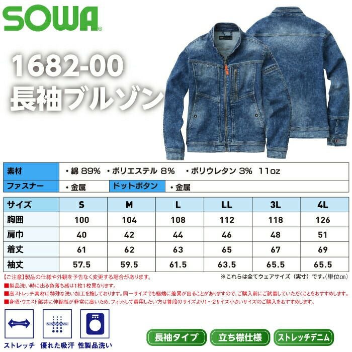 桑和 SOWA 作業服 作業着 作業ズボン 桑和 SOWA 作業服 秋冬用 1682-00 長袖ブルゾン S-LL