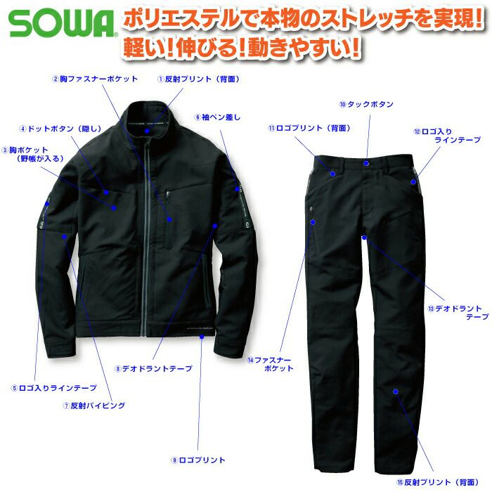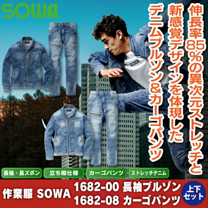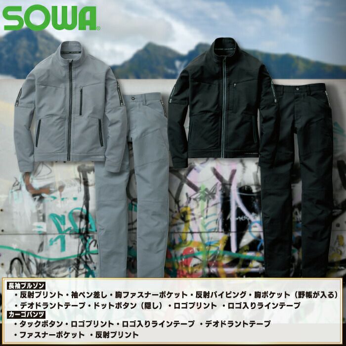 作業服 作業着 SOWA ブルゾン 秋冬用 作業服 上下セット SOWA 1682-00 長袖ブルゾンS-LL と 1682-08 カーゴパンツ S-LL 秋冬用 かっこいい おしゃれ 作業着 ズボン