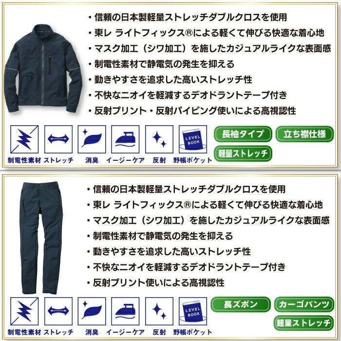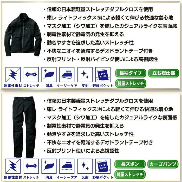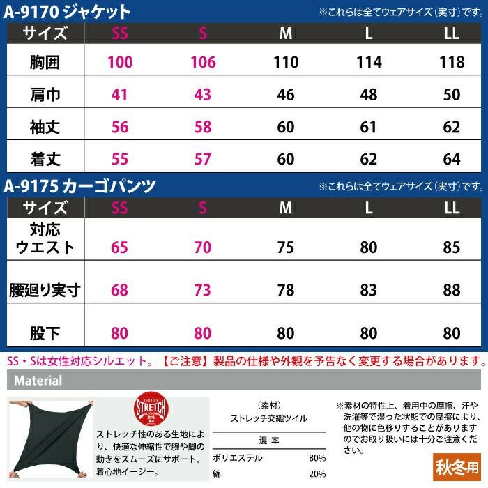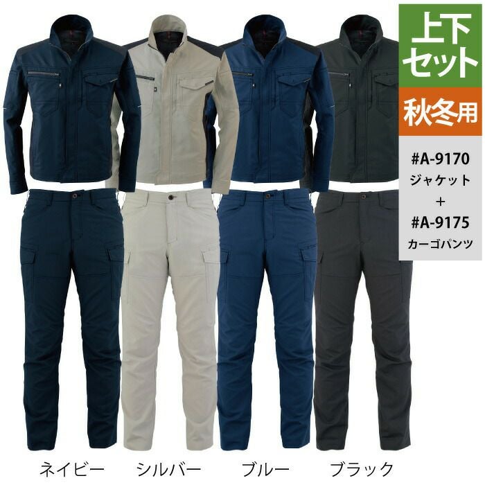 コーコス 作業服 作業着 作業ズボン コーコス 作業服 上下セット A-9170 ストレッチジャケットSS-LL と A-9175 ストレッチカーゴパンツ SS-LL 秋冬用 かっこいい おしゃれ