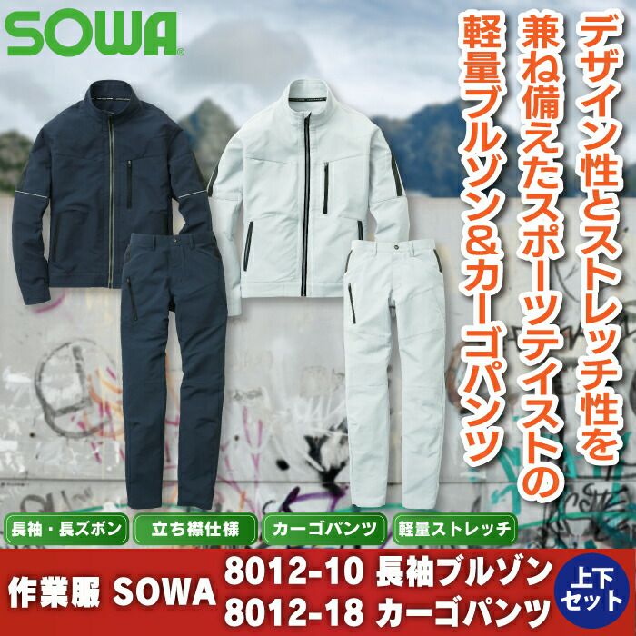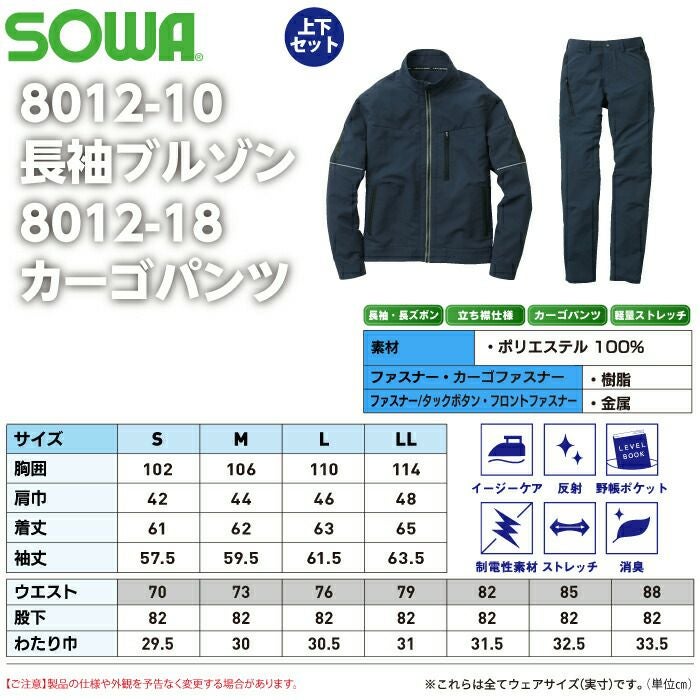 作業服 作業着 SOWA ブルゾン 秋冬用 作業服 上下セット SOWA 8012-10 長袖ブルゾンS-LL と 8012-18 カーゴパンツ 70-88 秋冬用 かっこいい おしゃれ 作業着 ズボン