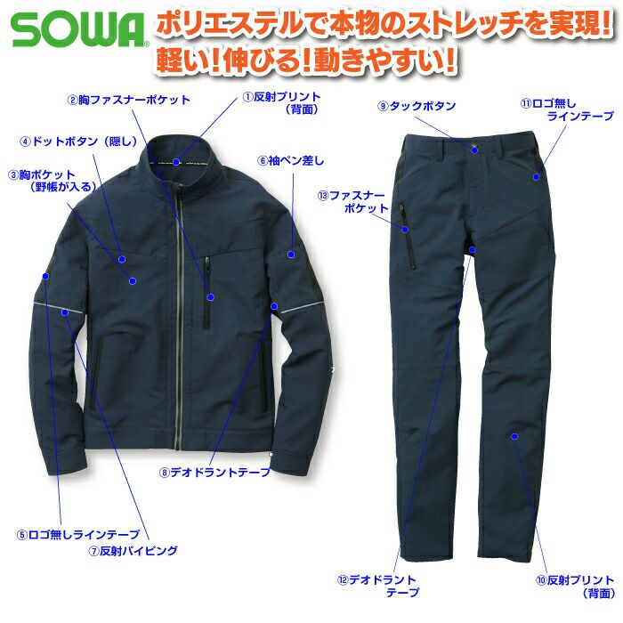 桑和 SOWA 作業服 作業着 作業ズボン 桑和 SOWA 作業服 秋冬用 9662 長袖ブルゾン SS-LL