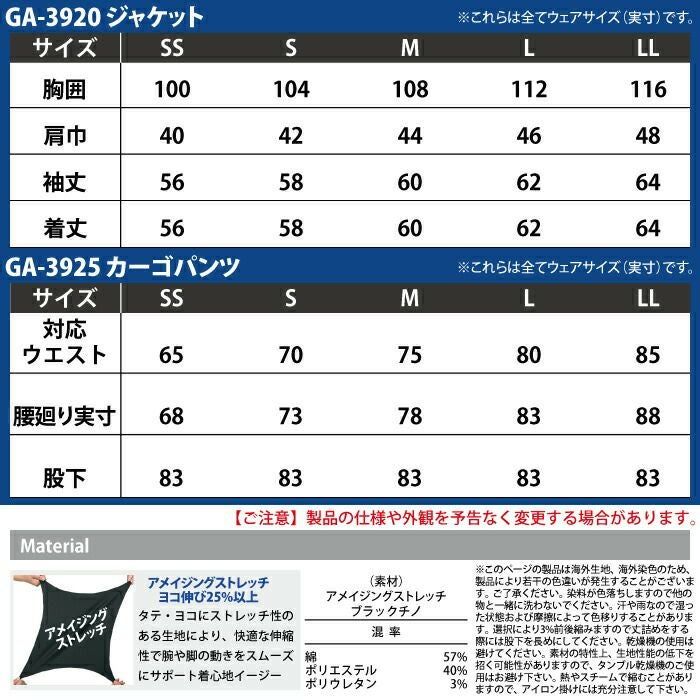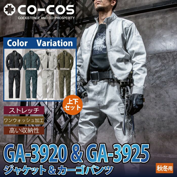 コーコス 作業服 作業着 作業ズボン コーコス 作業服 上下セット GA-3920 ストレッチジャケットSS-LL と GA-3925 ストレッチカーゴパンツ SS-LL 秋冬用 かっこいい おしゃれ