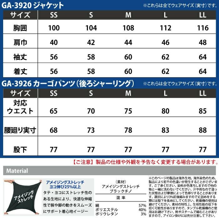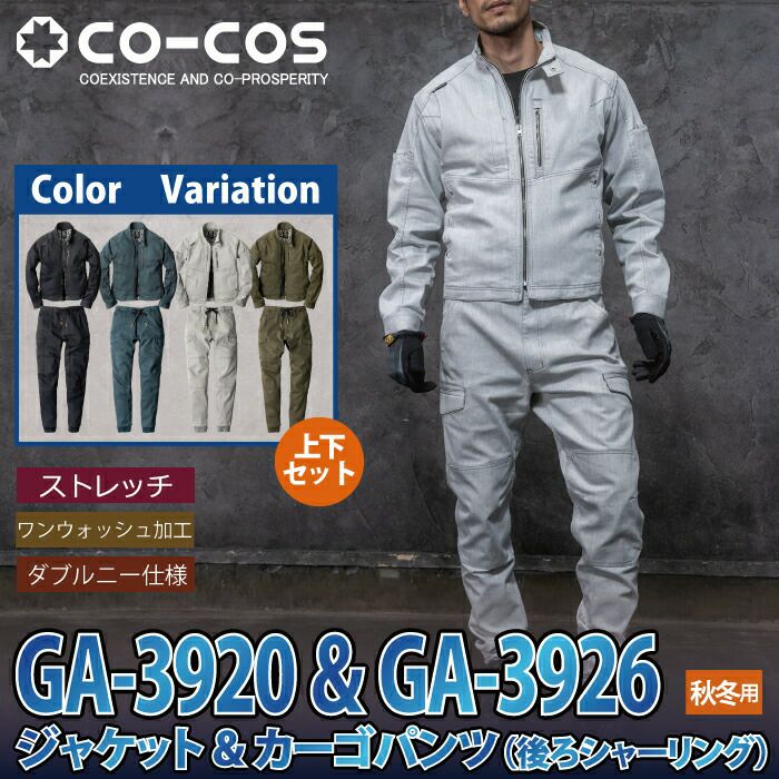 コーコス 作業服 作業着 作業ズボン コーコス 作業服 上下セット GA-3920 ストレッチジャケットSS-LL と GA-3926 ストレッチカーゴパンツ(後ろシャーリング) SS-LL 秋冬用 おしゃれ