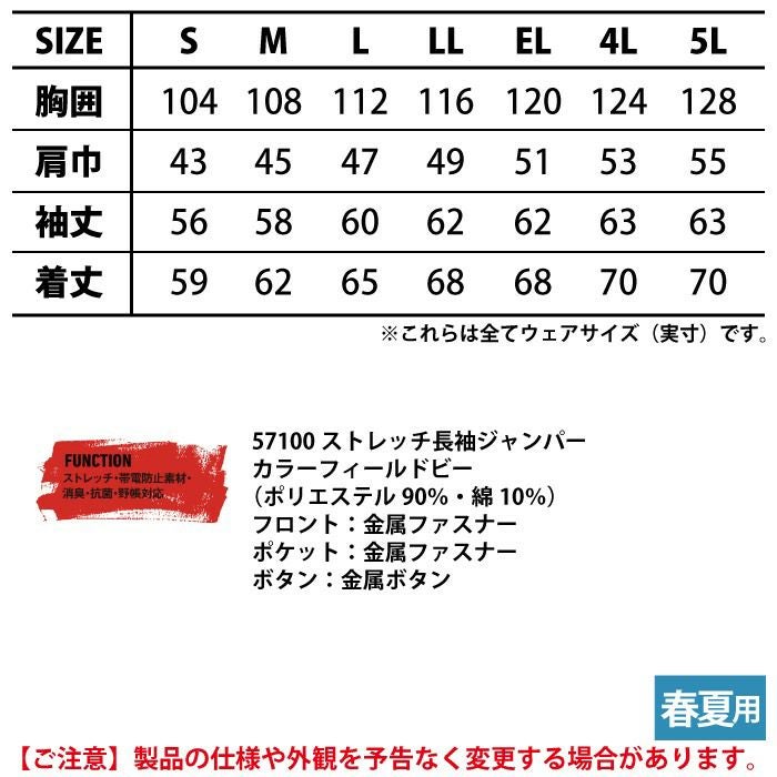 自重堂 作業服 作業着 作業ズボン 自重堂 作業服 57100 ストレッチ長袖ジャンパー 4L-5L 春夏用 作業着