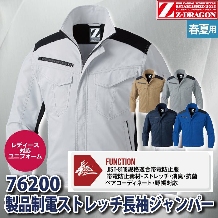 自重堂 Z-DRAGON 作業服 作業着 作業ズボン 自重堂 Z-DRAGON 作業服 76200 製品制電ストレッチ長袖ジャンパー EL 春夏用 作業着