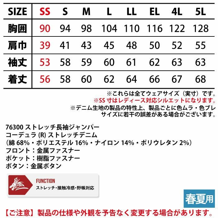 自重堂 Z-DRAGON 作業服 作業着 作業ズボン 自重堂 Z-DRAGON 作業服 76300 ストレッチ長袖ジャンパー 4L-5L 春夏用 作業着