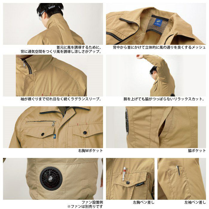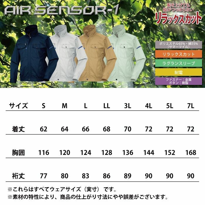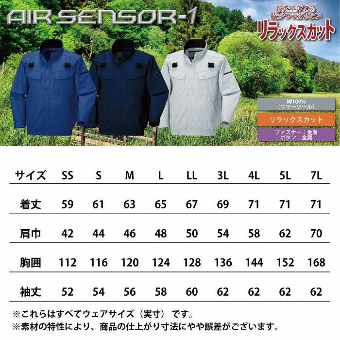 作業着 空調服 電動ファン 熱中症 ファン付きウェア (服のみ) クロダルマ 作業服 258601 空調エアセンサー対応長袖ジャンパー S-5L 春夏用