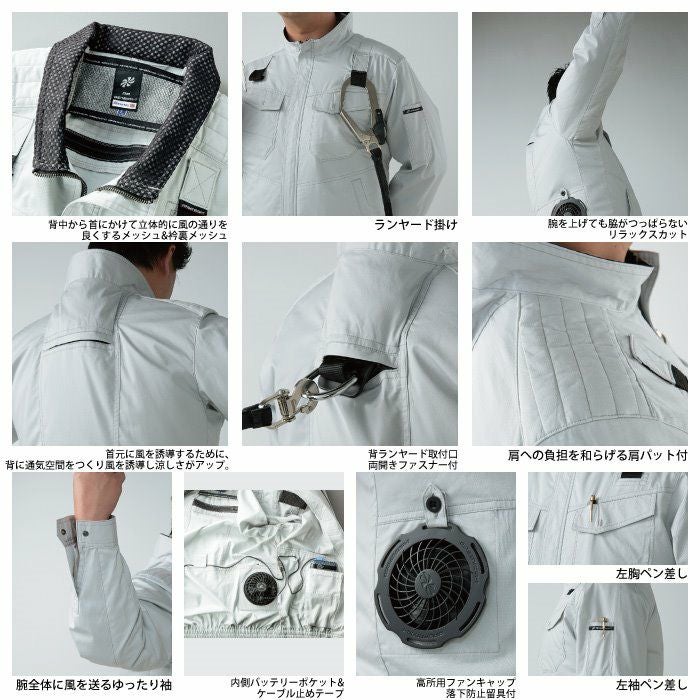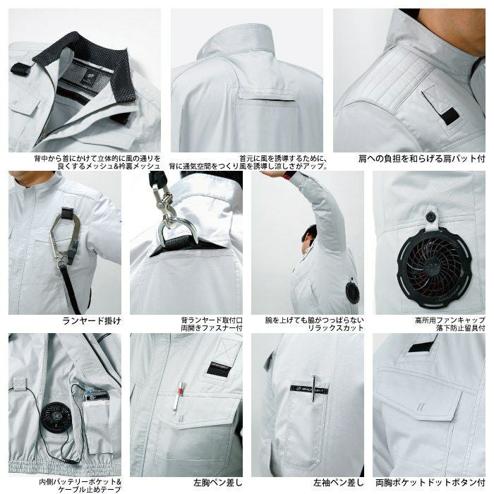 作業着 空調服 電動ファン 熱中症 ファン付きウェア (服のみ) クロダルマ 作業服 258631 ハーネス対応長袖ジャンパー SS-5L 春夏用